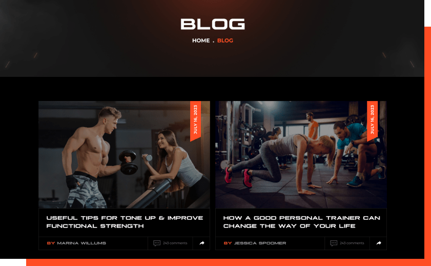 we have provided multiple layouts for fitness blogs to share fitness knowledge with various clients & users. For details we provide both with & without sidebar options